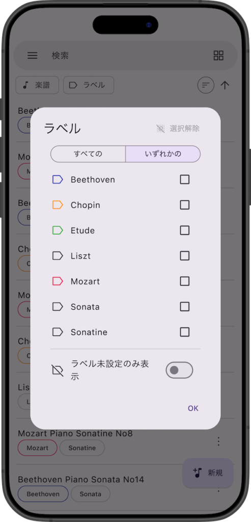 - ラベルの絞り込みで「完全一致」スイッチを廃止し、「ラベル未設定のみ表示」スイッチを追加しました。