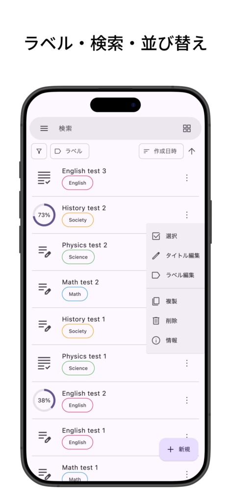 - シートの右のメニューからラベル編集やシートの複製をすることができます。