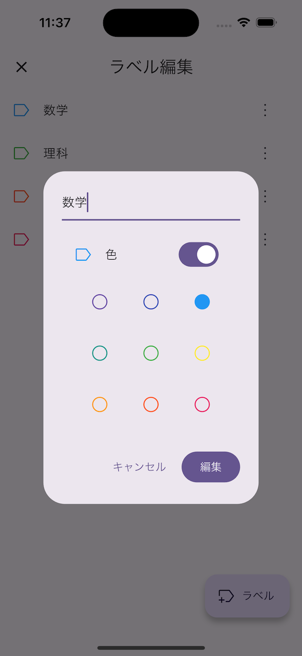 When adding or editing a label, turning on the switch in the dialog allows you to select a color.