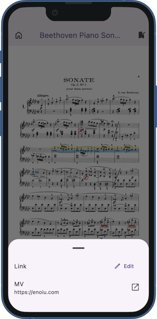 By adding links such as music or videos for each score, you can quickly access links related to that score.