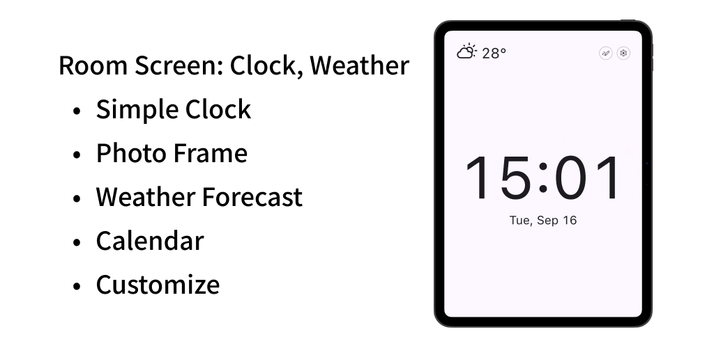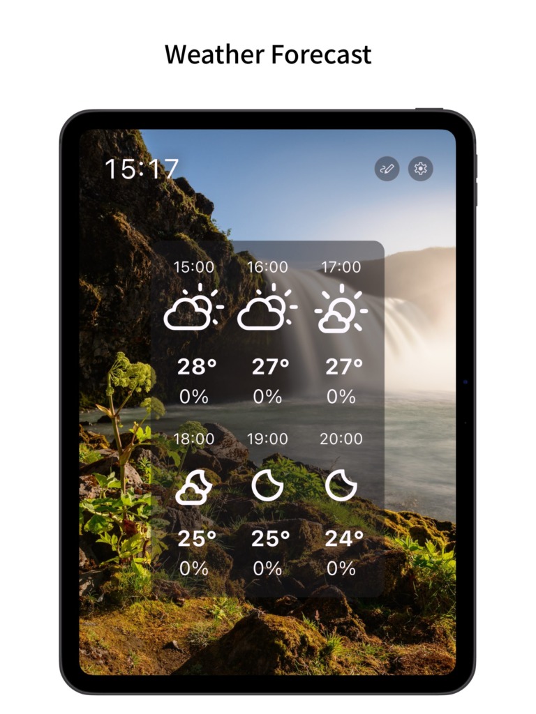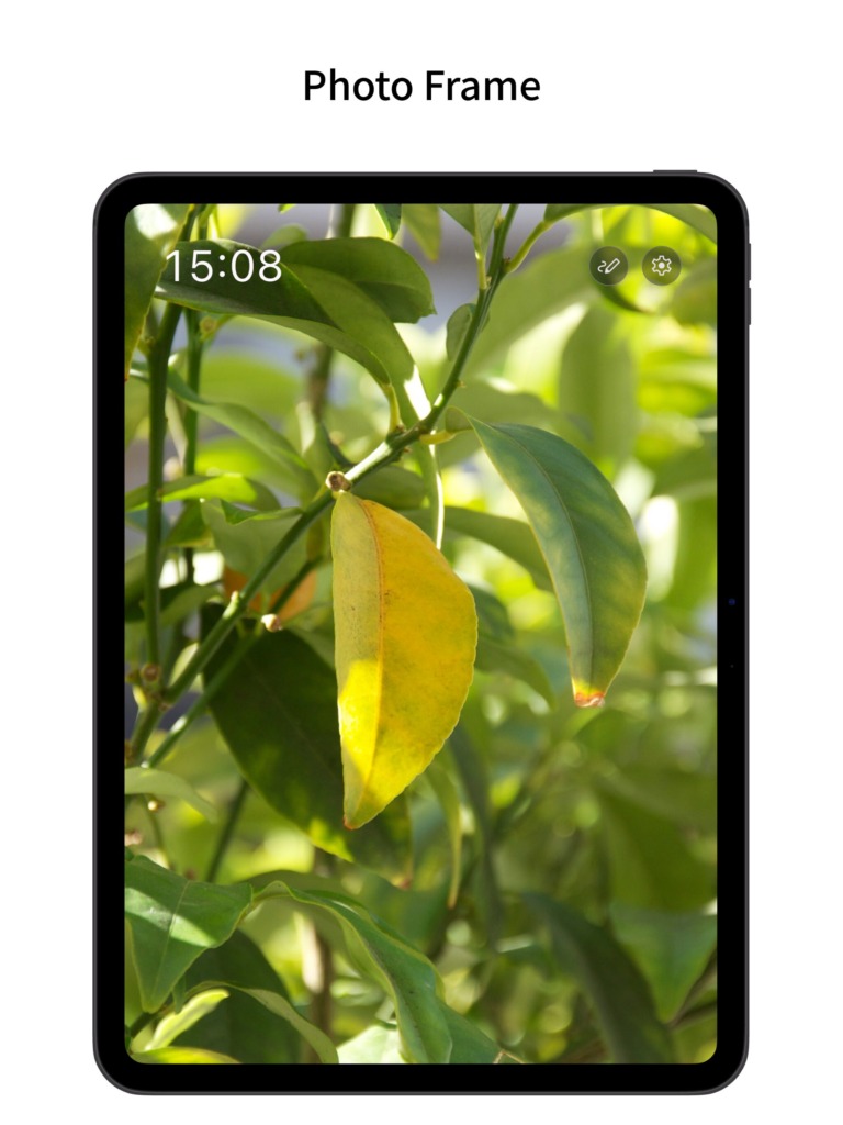 - By displaying only the time or weather on the top bar, you can use it like a digital photo frame with the image as the main focus.
