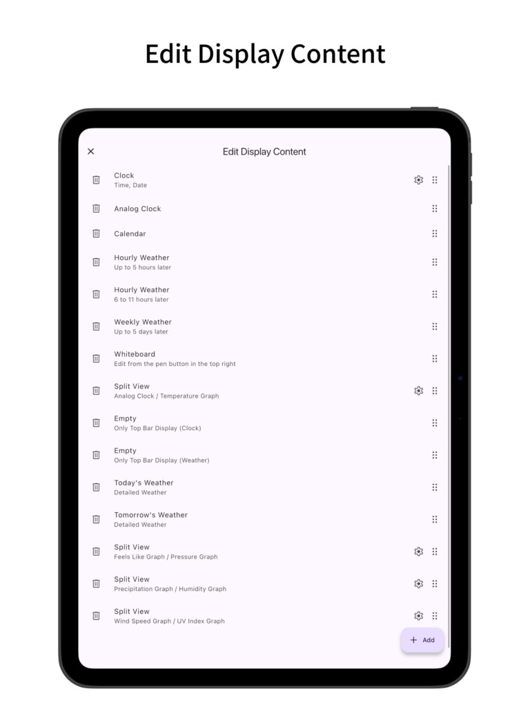- You can add, delete, and rearrange the content displayed on the screen from the settings.