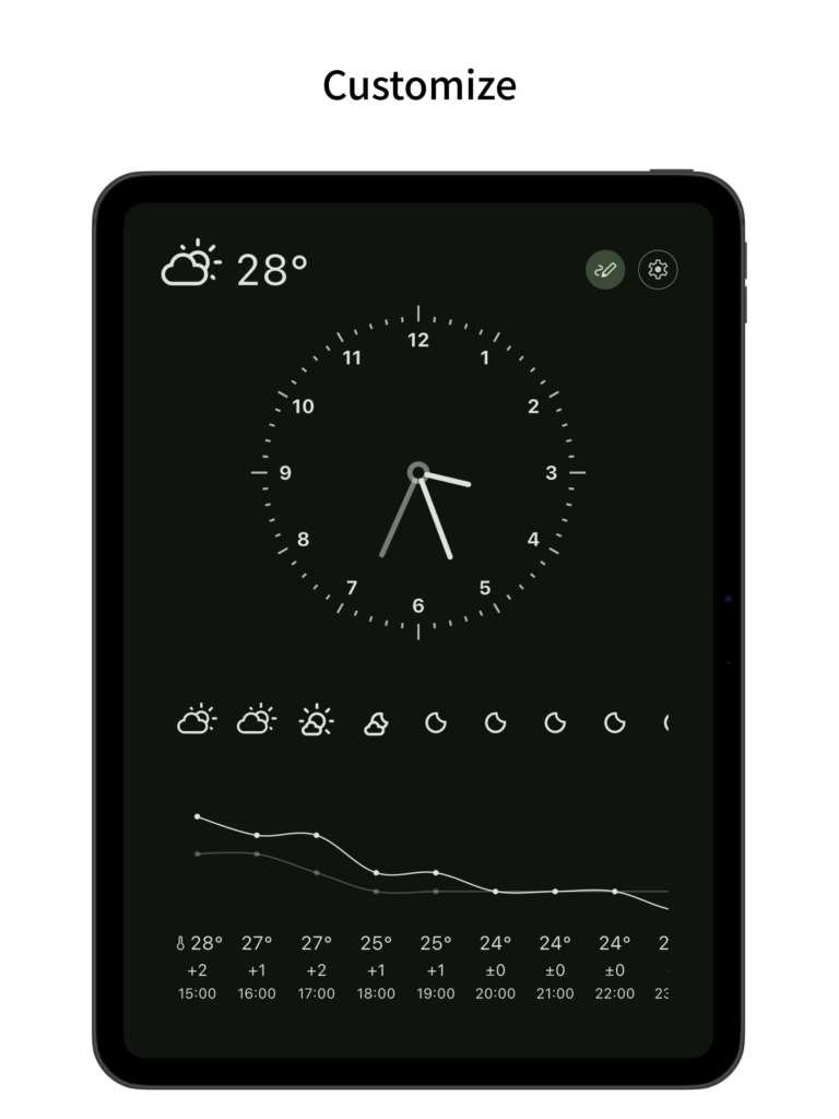 - If you turn on detailed weather in the settings, you will be able to display today’s weather, tomorrow’s weather, and graphs from the display content.